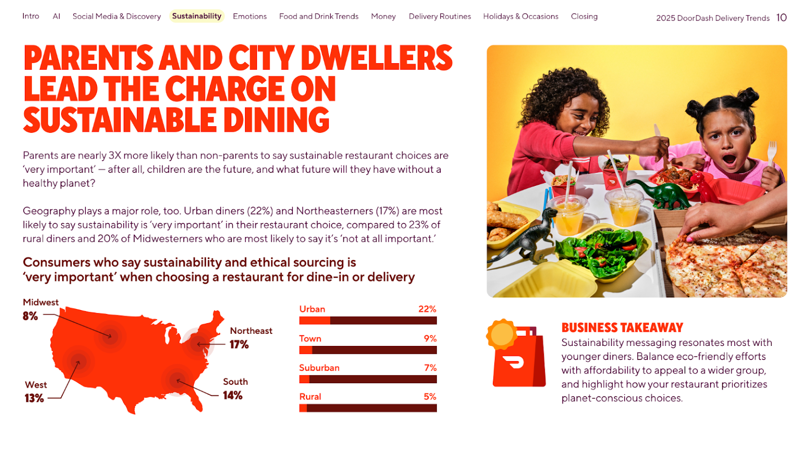 In the DoorDash Delivery Trends report, we used a map to display geographic data, and got into the more detailed insights in the surrounding copy.